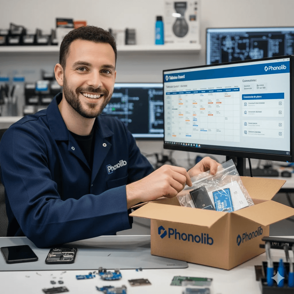 Phonolib se positionne comme un partenaire stratégique, agissant comme un agrégateur qui simplifie l’ensemble de ces processus pour les réparateurs indépendants. L’intégration de la gestion des rendez-vous qu’ils viennent d’internet ou depuis votre flux interne, vous n’avez plus qu’à valider les commandes de pièces pour vos réparations.